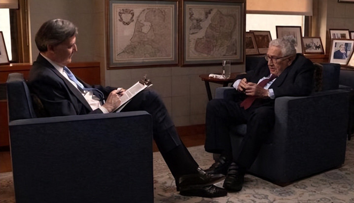 基辛格生于1923年德国犹太家庭,1938年移民美国,二战时加入美军搞情报。战后读哈佛,专攻政治,1950年代出书谈核战略。1969年进尼克松政府,当国家安全助理,后来升国务卿。1971年他秘密访北京,帮尼克松打开中美大门,1972年尼克松去中国,1979年两国建交。